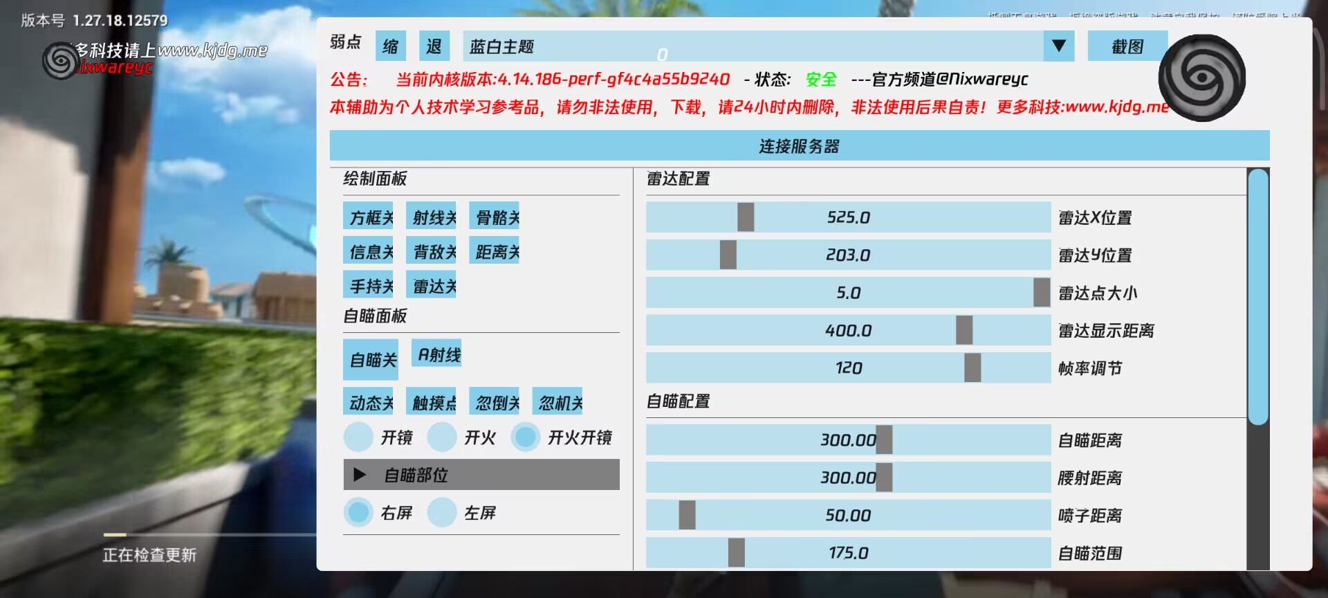 废强 2024年8月9日 全屏显示 和平精英手游Weakness弱点-透视自瞄多功能内核ROOTv2024.8.9 分类: 和平精英 发布: 2024年8月9日 更新: 2024年8月9日 免费下载无需登入,如需登入的需要登入才可下载 请先登录 软件介绍 修复闪退掉后台卡顿等一系列问题 优化自瞄 更换UI 绘图更换为旧弱点绘图 增加imgui截图功能 增加音量键显隐悬浮窗 游戏截图 本文作者:废强本文链接: https://www.kjdw.net/hpjy/3502.html 版权声明:本博客所有文章除特别声明外,均默认采用 CC BY-NC-SA 4.0 许可协议。 00和平精英手游Weakness弱点-透视自瞄多功能内核ROOTv2024.8.9海报分享QQ分享QQ空间微博分享复制链接 支付宝扫一扫 微信扫一扫 感谢支持 文章很赞!支持一下吧